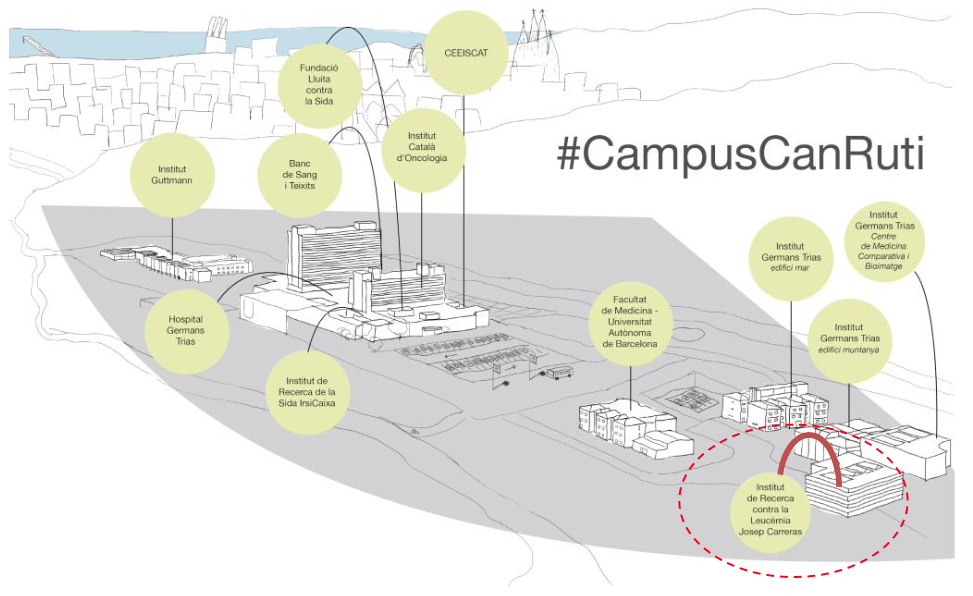 We are based in the headquarters of the Josep Carreras Leukaemia Research Institute (IJC) that are part of the biomedical Campus Can Ruti located in the costal mountain range of Badalona next to Barcelona.